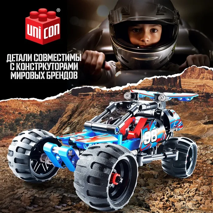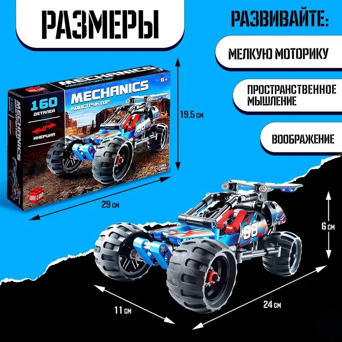 Конструктор гоночная машина «Багги» UNICON Mechanics, инерционный, 160 деталей, 6+ — Характеристики