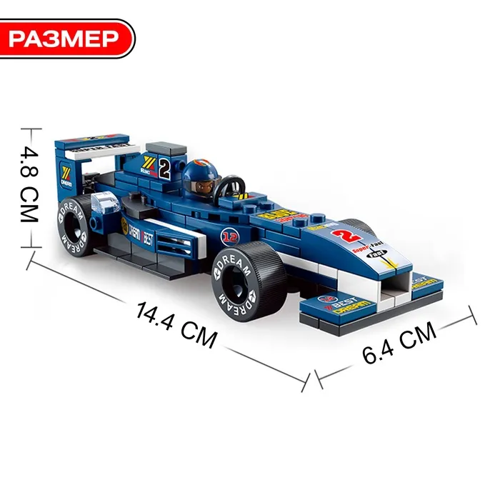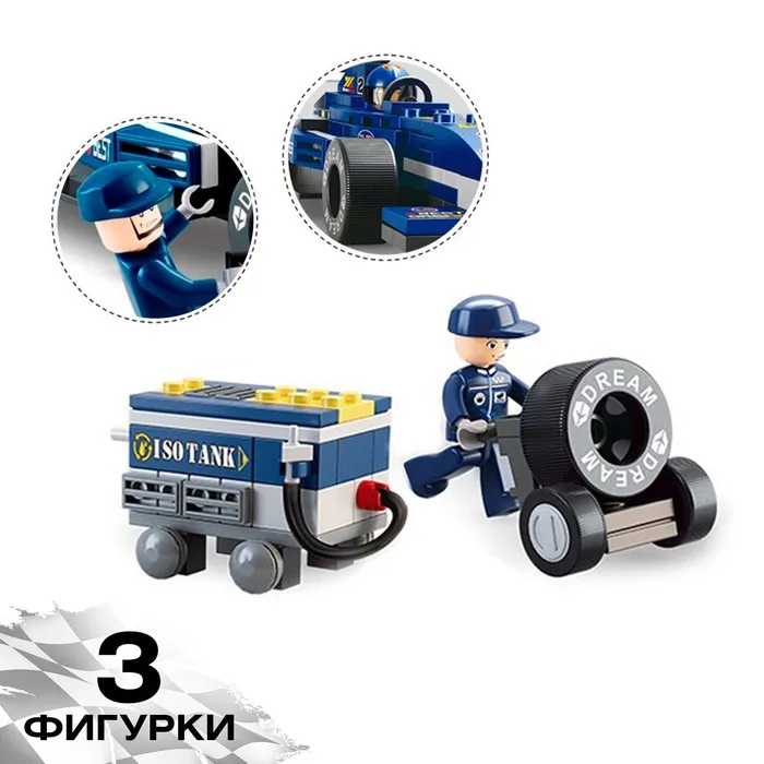 - Набор содержит 196 деталей и позволяет собрать спорткар, фигурку гонщика, автономную заправочную станцию и компрессор.