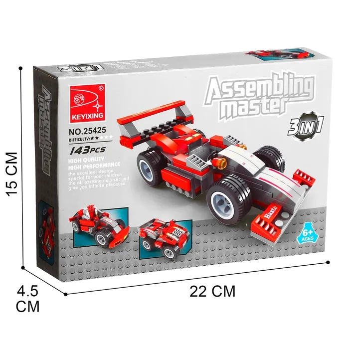 Конструктор гоночная машина «Супергонщик» KEYIXING Assembling Master, 3 в 1, 143 детали, 6+ — Характеристики