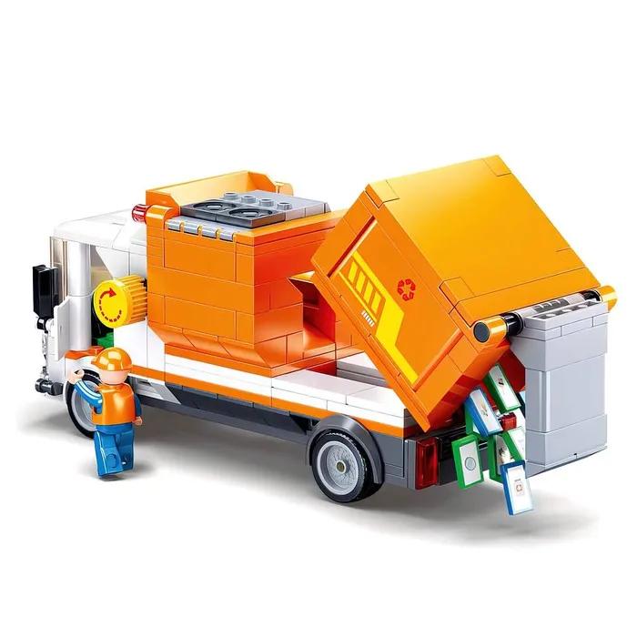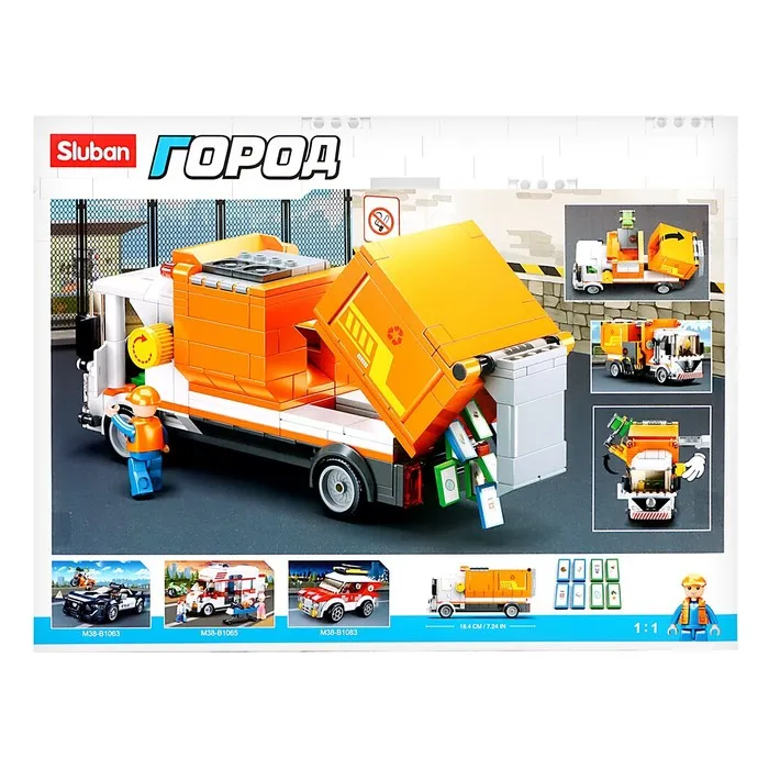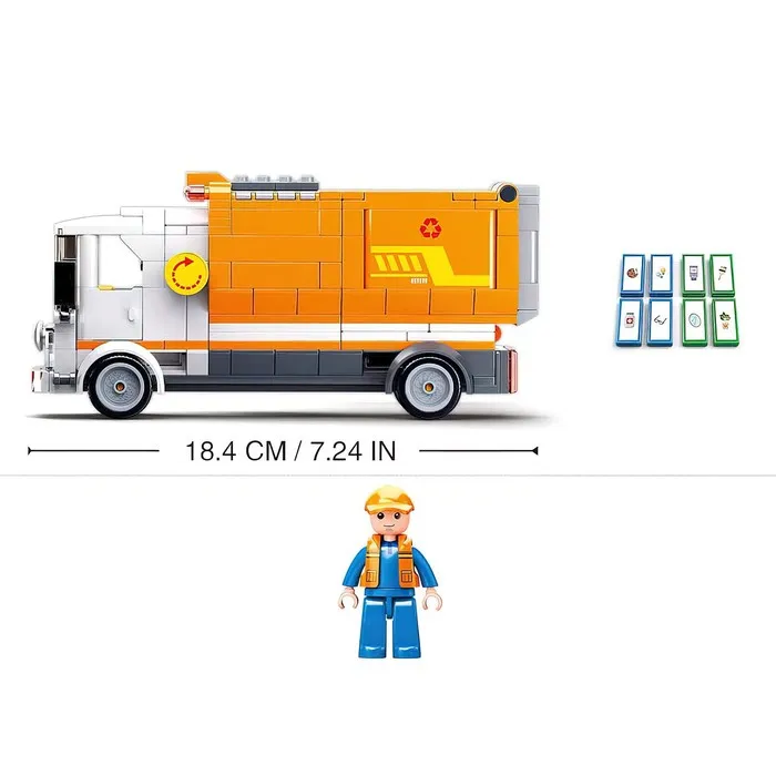 - Фигурки и аксессуары: В комплекте есть мини-фигурки водителя и рабочие элементы, которые делают игру реалистичной и увлекательной. Ребенок сможет придумывать сценарии уборки города и работы с мусоровозом.