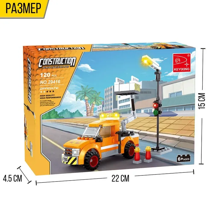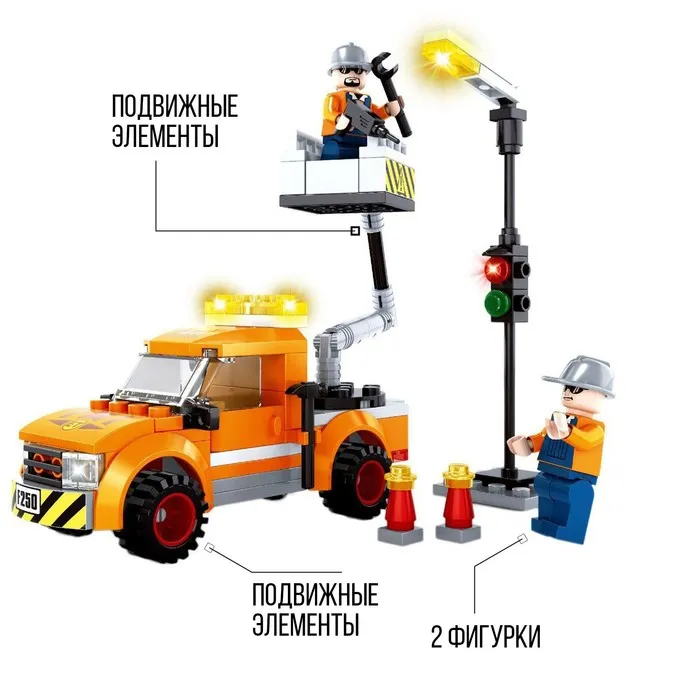 Набор содержит 120 деталей и позволяет сконструировать грузовую машину, светофор и две мини-фигурки электриков. Яркие и разнообразные элементы создадут неограниченный простор фантазии — ребёнок придумает множество увлекательных сюжетов и невероятно весело проведёт время.