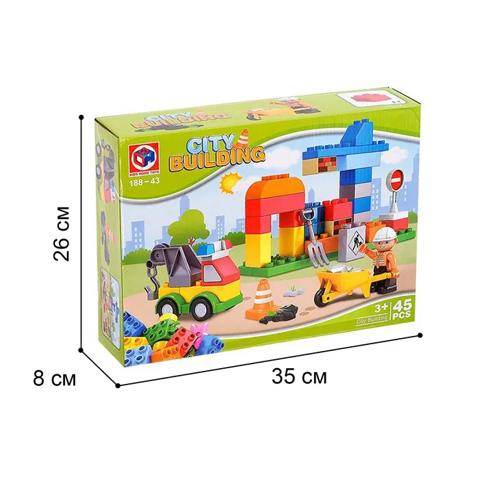 Конструктор для юных строителей, с которым можно создать городской пейзаж и разыгрывать увлекательные истории.