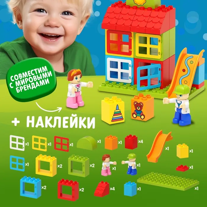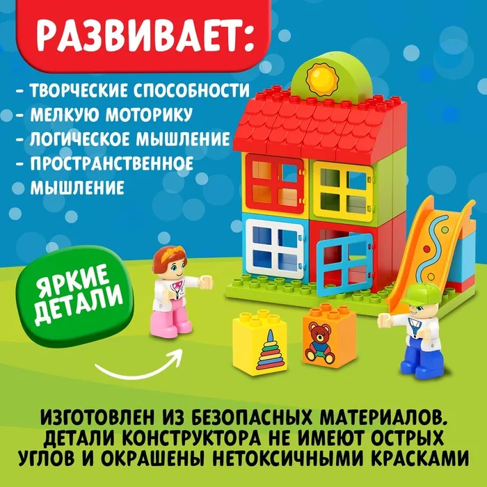 Детский блочный конструктор — это волшебный мир строительства и возможность для развития малыша! Набор из крупных пластиковых деталей поможет потренировать мелкую моторику, воображение и логическое мышление ребёнка. Конструктор «Игровая площадка» поможет малышу самому смоделировать ситуацию, которая произойдёт с ним на улице. Малыш построит площадку мечты, а фигурки в наборе добавят игре динамики и реалистичности.