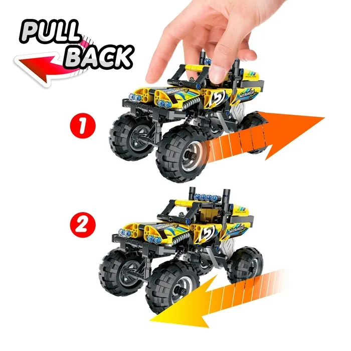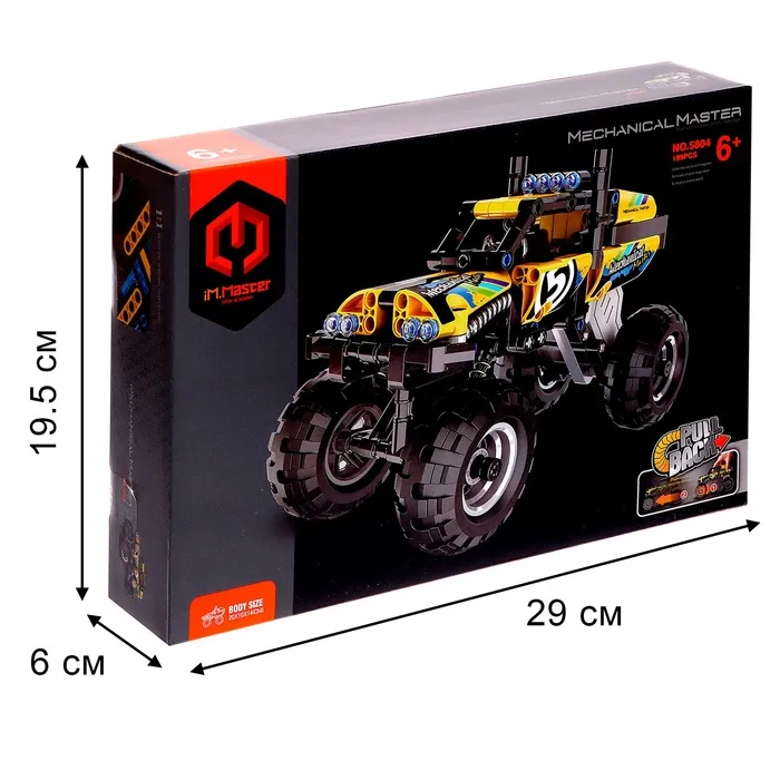 - Компактный набор – 199 деталей: В комплекте все необходимые детали для сборки багги с инерционным механизмом, который поедет самостоятельно, как только его сдвинут с места.