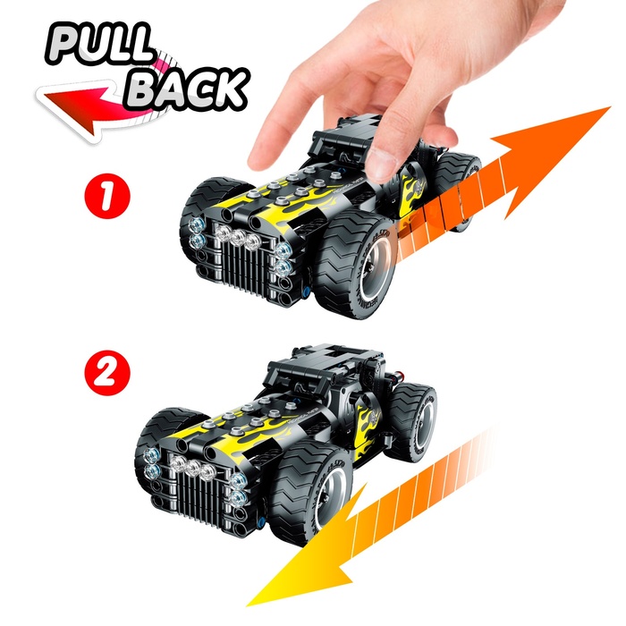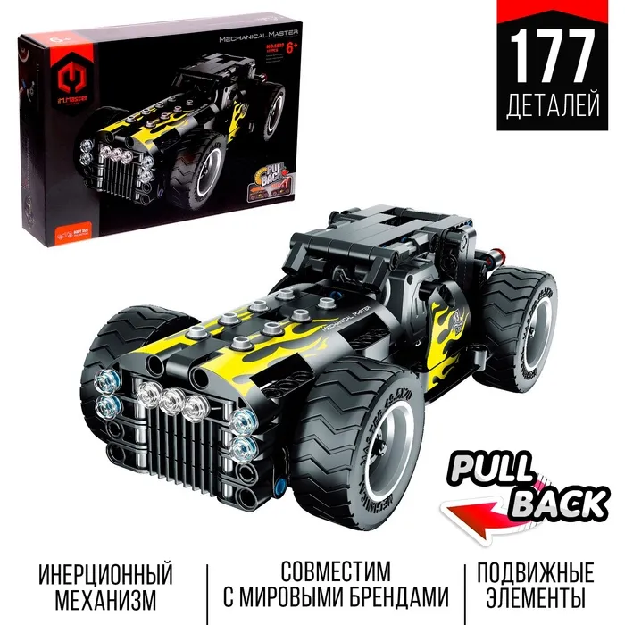 Построй свой инерционный мускул кар! Конструктор «Мускул кар» – это увлекательный набор для создания стильного и мощного автомобиля с инерционным механизмом, который будет двигаться самостоятельно, как только его немного сдвинут с места.
