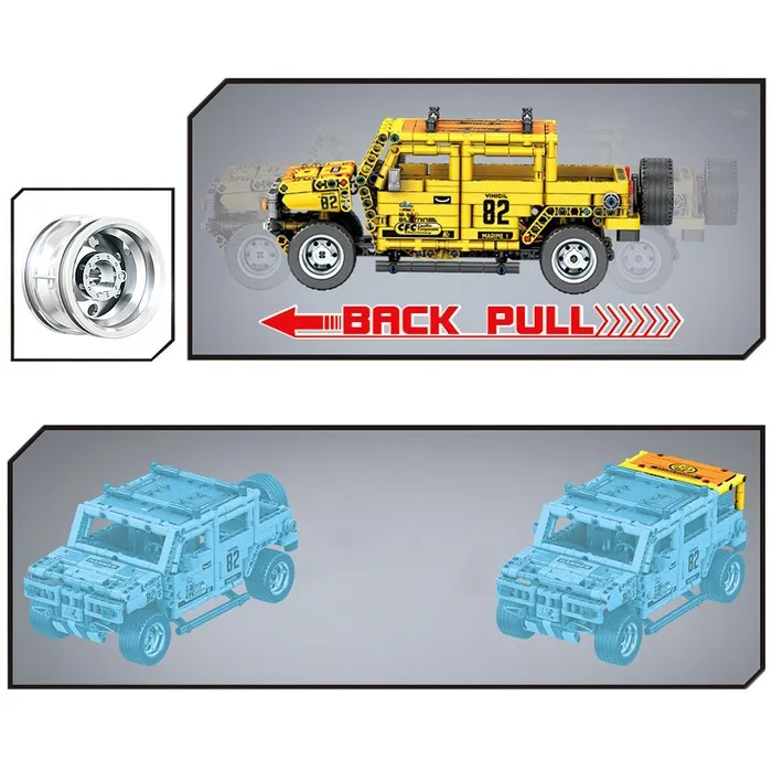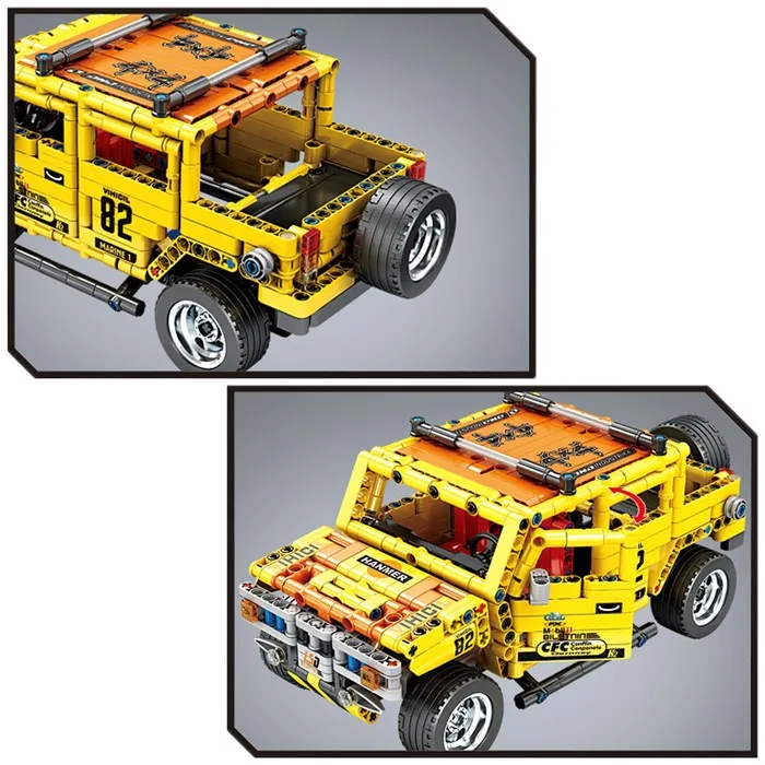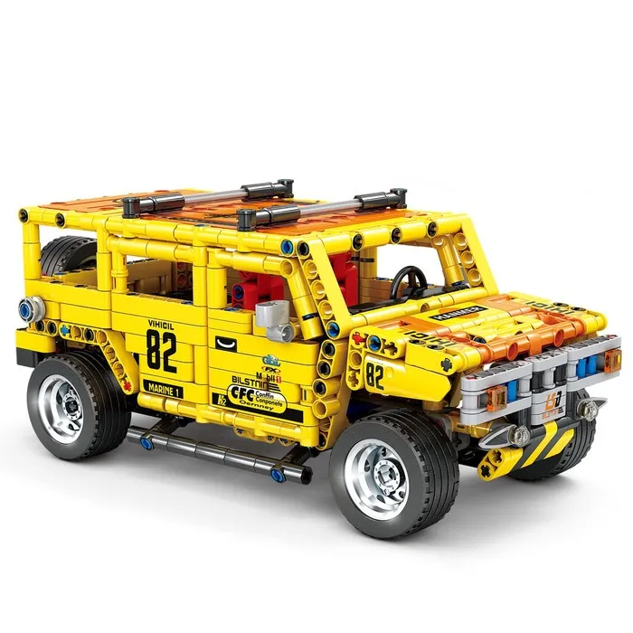 - Детализированная коллекционная модель: конструктор повторяет особенности реальных внедорожников — высокий клиренс, крупные колёса, рельефный кузов.