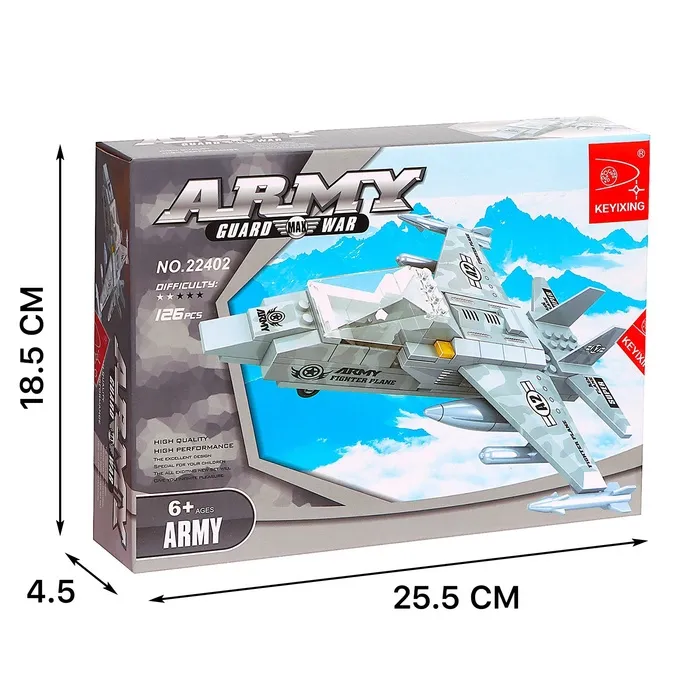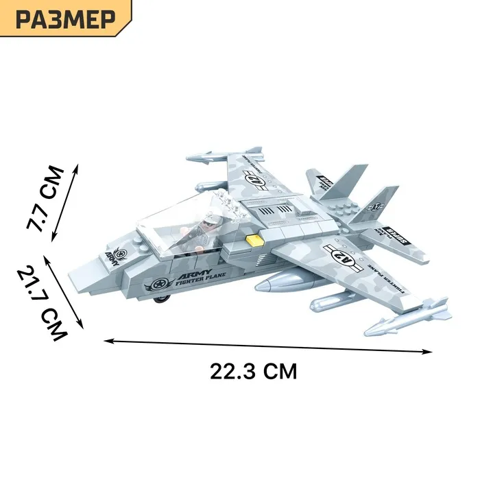 Набор содержит 126 деталей и позволяет сконструировать современную авиационную технику и фигурку пилота.