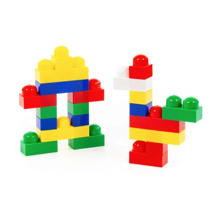 - Простая сборка: Детали хорошо стыкуются, соединяются без усилий и не рассыпаются при игре. Конструктор подходит даже для маленьких детей.