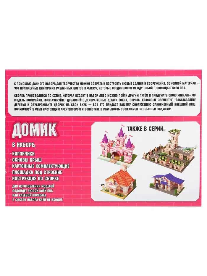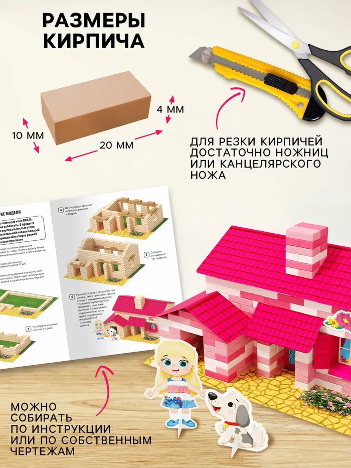 Конструктор для творческого строительства — набор миниатюрных кирпичиков, идеально подходящий для создания архитектурных моделей и собственных проектов. Детали выполнены из легкого полимерного материала, напоминающего камень. Конструктор дает возможность возводить масштабные и детализированные строения, которые легко собираются и также легко изменяются, что позволяет воплощать самые разные задумки и архитектурные решения.