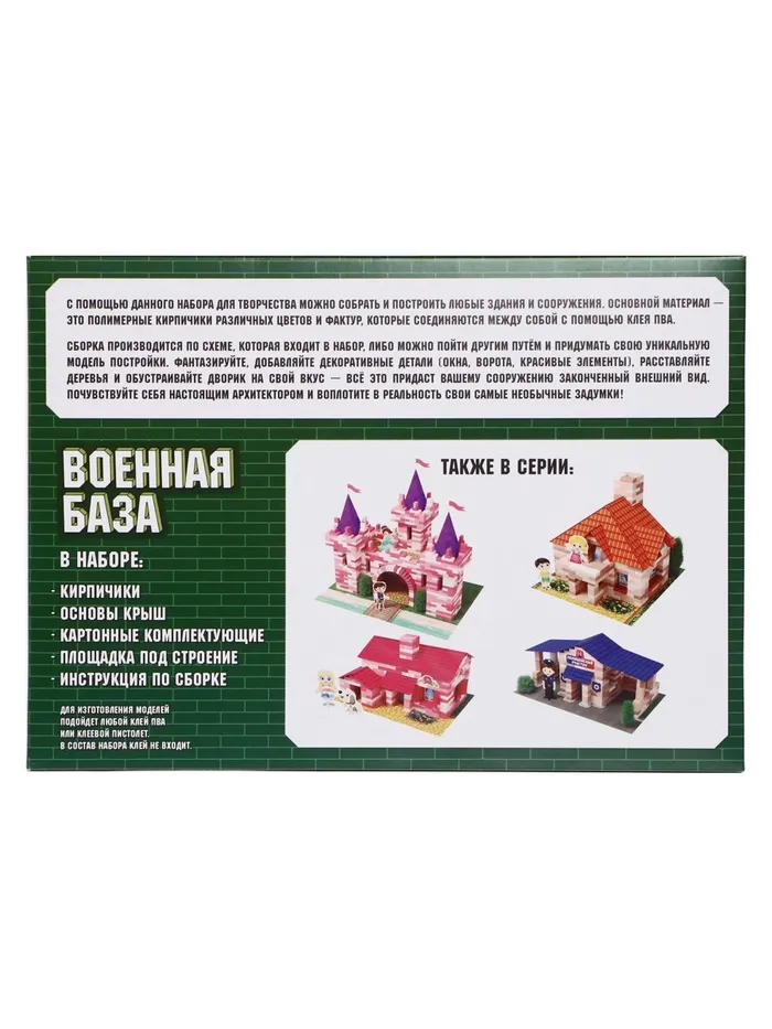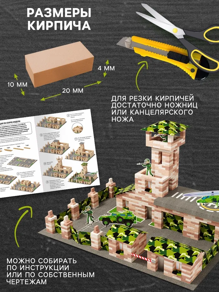 Конструктор для творческого строительства — набор миниатюрных кирпичиков, идеально подходящий для создания архитектурных моделей и собственных проектов. Детали выполнены из легкого полимерного материала, напоминающего камень. Конструктор дает возможность возводить масштабные и детализированные строения, которые легко собираются и также легко изменяются, что позволяет воплощать самые разные задумки и архитектурные решения.