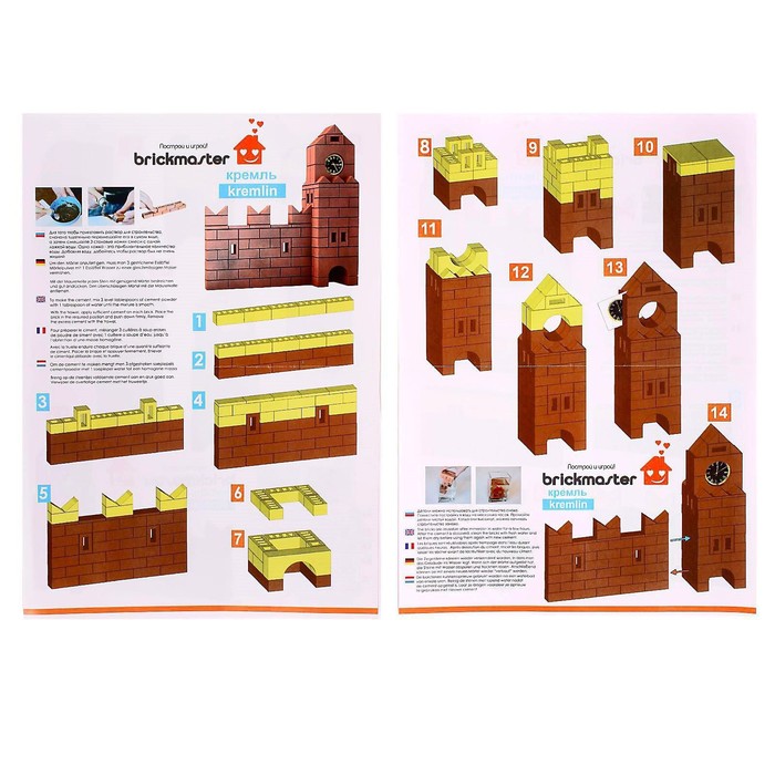 Соединить между собой детали будущей постройки позволит экологически безопасная специальная смесь, которая состоит из речного песка и кукурузного крахмала. Она не только обладает всеми свойствами настоящего цемента, но также позволяет при необходимости несколько раз перестраивать конструктор: достаточно готовую постройку поместить на 2-3 часа в воду, и все кирпичики снова отделятся друг от друга.