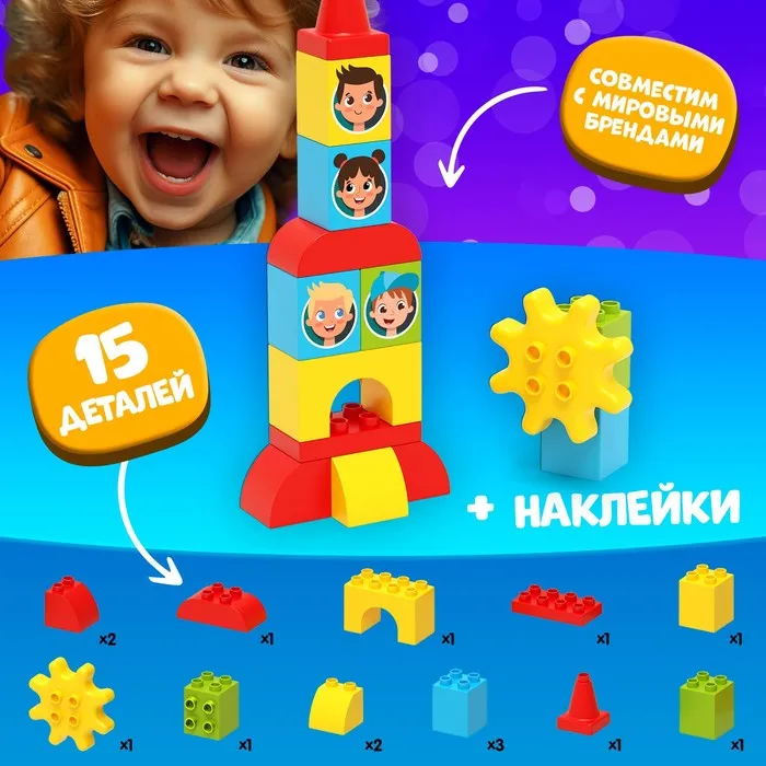 Конструктор «Космическая ракета», наклейки в наборе, 15 деталей — Характеристики