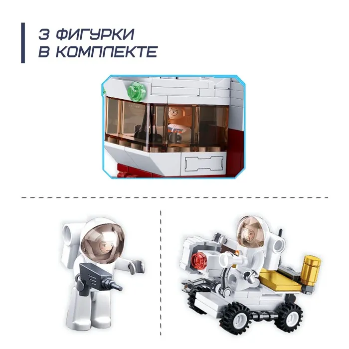 - Три фигурки в комплекте: В набор входят три мини-фигурки астронавтов, что позволяет создавать интересные сценарии космических исследований и игры.