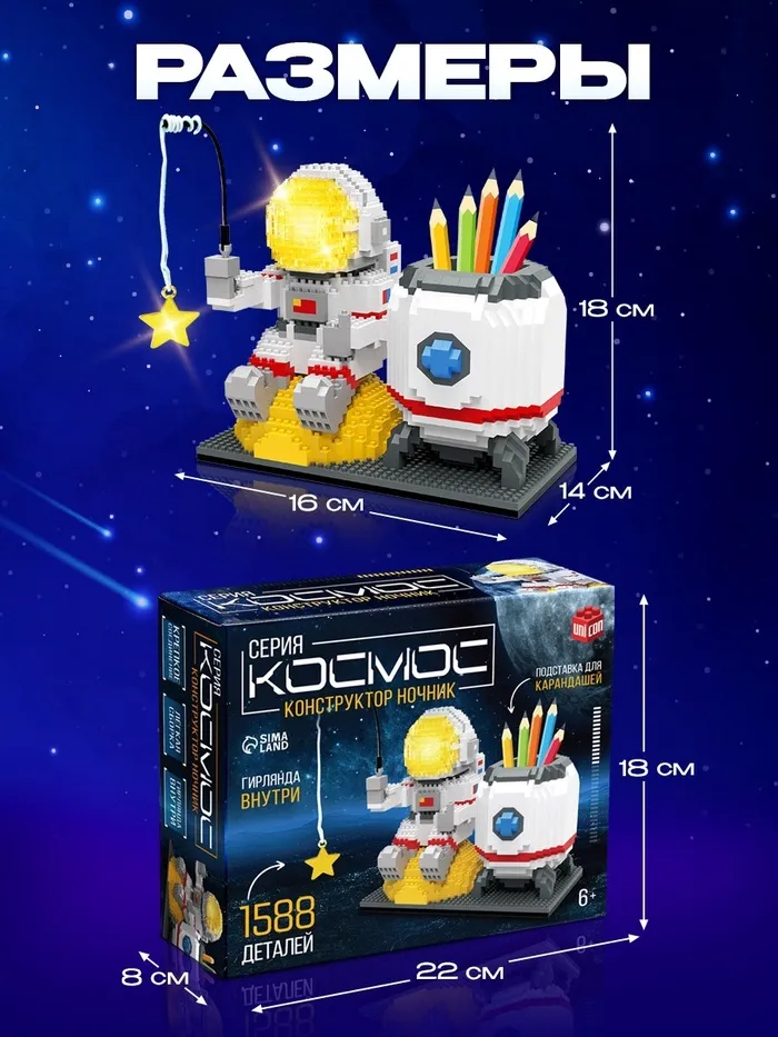 Конструктор «Космос», ночник и подставка под карандаши, 1 588 деталей — Характеристики