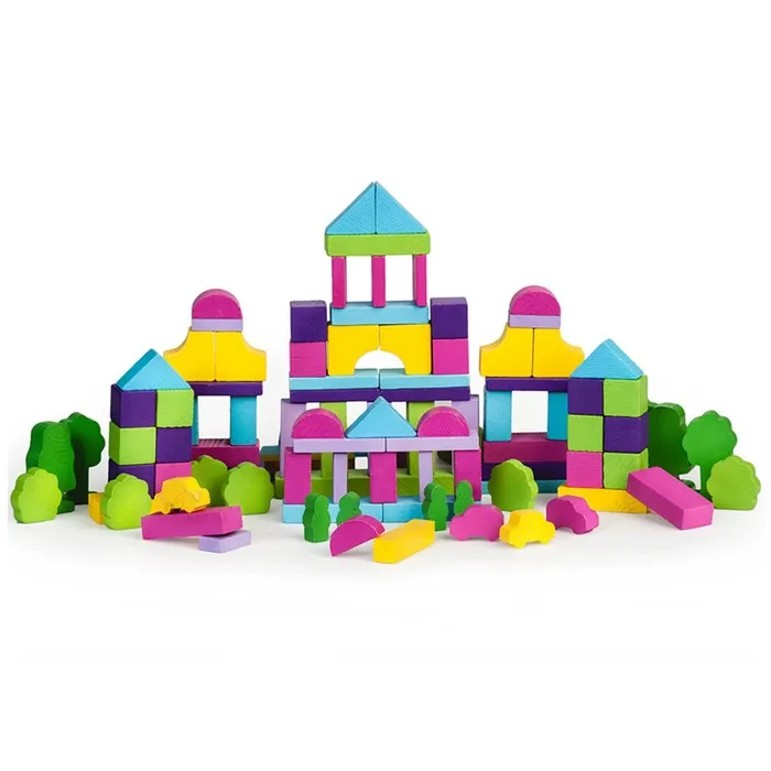В набор входит 105 деталей, которые сделаны из прочного и экологичного материала — дерева.