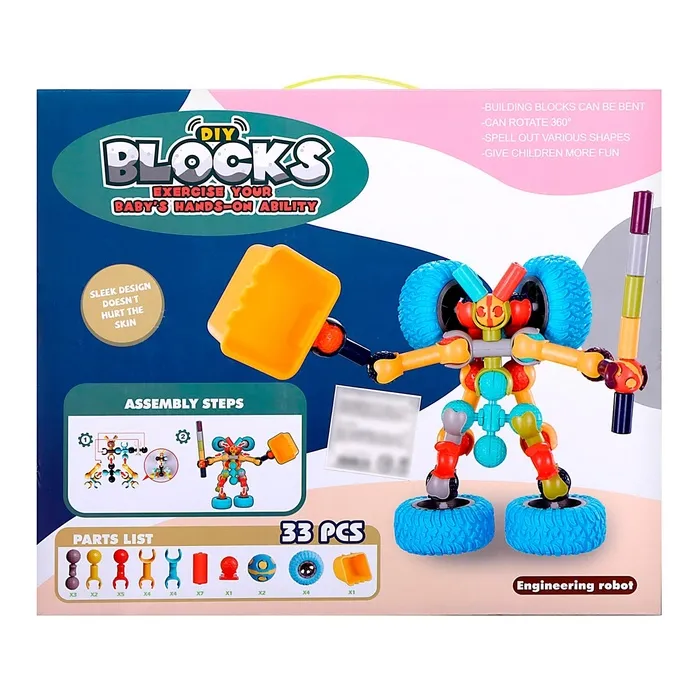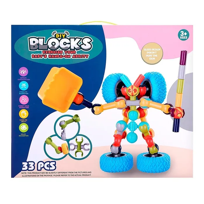 - 33 детали: Набор включает все необходимые элементы для сборки робота. Каждая деталь легко соединяется, обеспечивая удобство и удовольствие от процесса сборки.