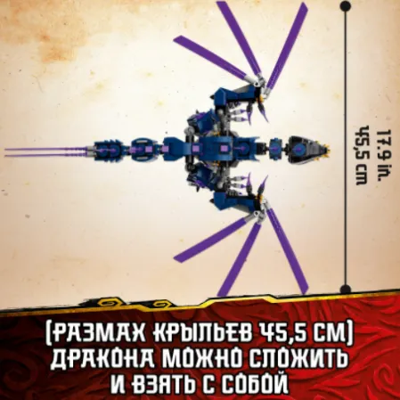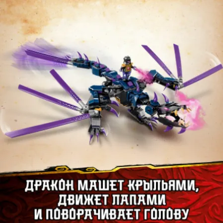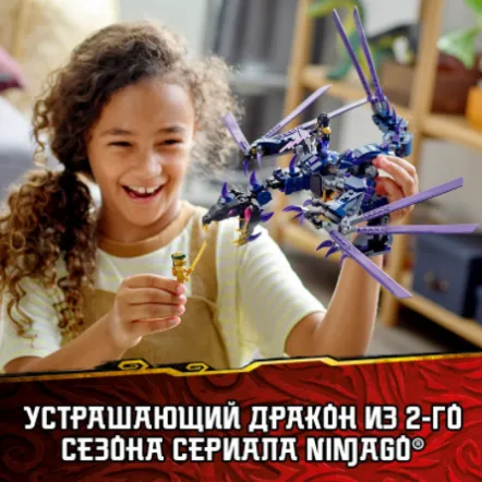 Воссоздайте динамичные сцены из любимого сериала вместе с конструктором LEGO NINJAGO 71742 «Дракон Оверлорда». Золотой Ллойд вступил в битву с Оверлордом и страшным драконом, но один он никак не справится. Опасайтесь взмывающего в небо дракона, который очень хочет схватить вас своими острыми когтями. Атакуйте Оверлорда катаной, но берегитесь его клинка. Ниндзя должны одержать победу над могучими силами тьмы. Крутая игрушка с любимыми героями – отличная идея для новогоднего подарка ребятам старше 7 лет.