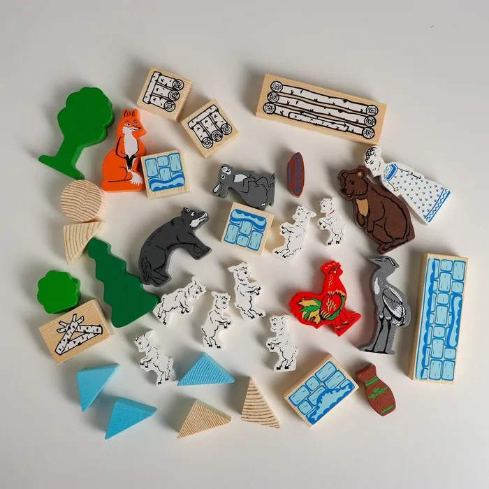 Конструктор «Лесные сказки» — это увлекательный и развивающий набор для детей от 3 лет. В наборе 35 деревянных элементов, выполненных из безопасного материала. Детали конструктора позволяют детям разыгрывать сцены из любимой сказки и придумывать свои истории, развивая мелкую моторику, воображение и речь.