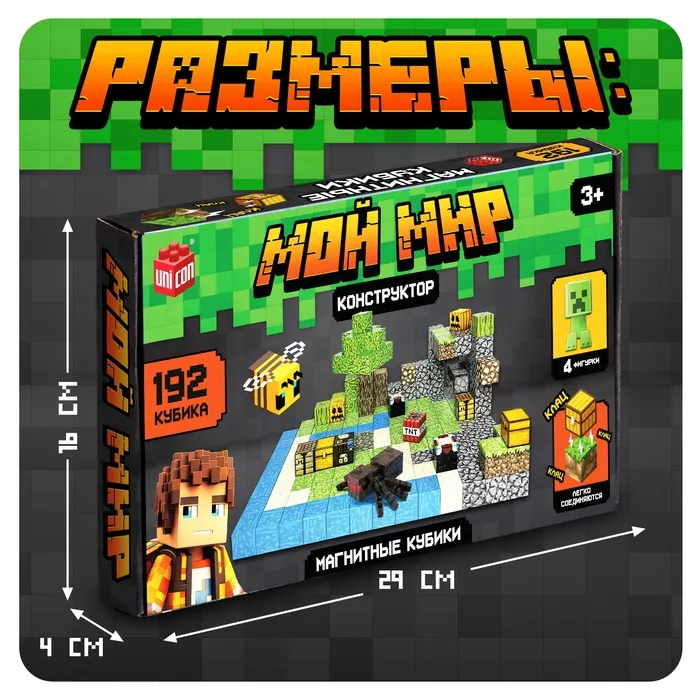 Конструктор «Магнитные кубики. Мой мир» станет идеальным подарком для маленьких фантазёров и создателей. Набор включает 192 элемента и 4 фигурки, чтобы ребёнок мог собрать свой собственный кубический мир, наполненный необычными формами, строениями и персонажами. Магнитные кубики легко соединяются, позволяя ребёнку самостоятельно создавать, перестраивать и развивать свой «игровой мир» снова и снова.