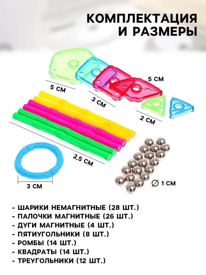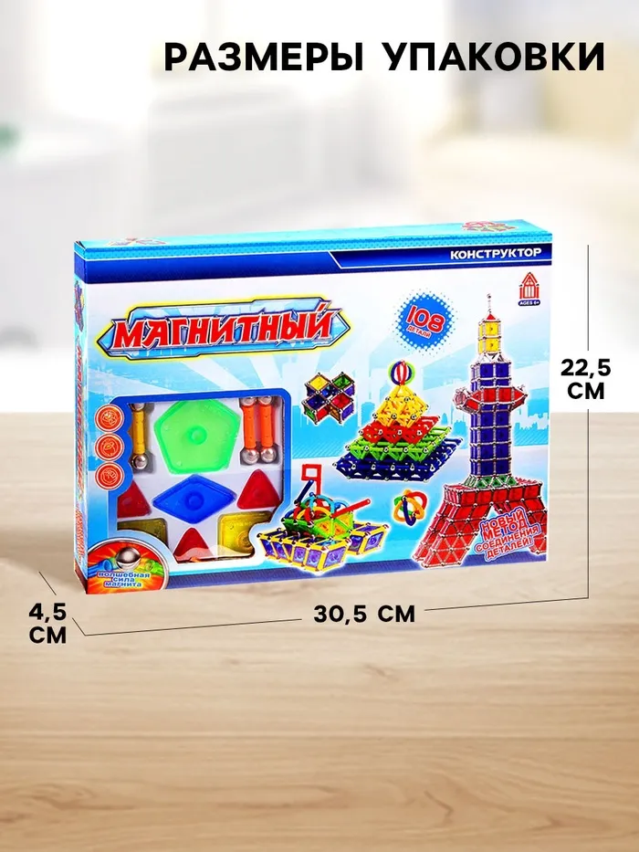 Конструктор магнитный, 108 деталей — Характеристики