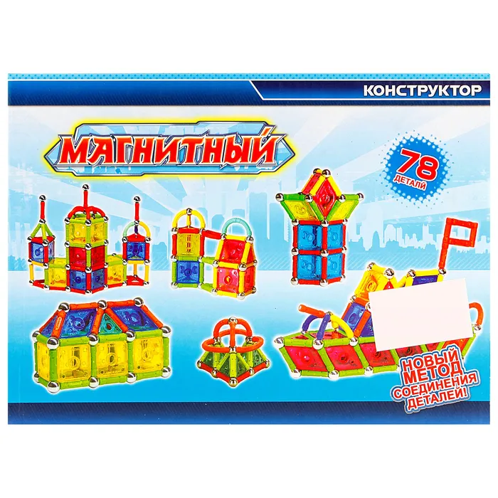 - Разнообразие деталей: Конструктор предлагает 78 магнитных деталей, которые легко соединяются между собой, создавая разнообразные формы и конструкции. С таким набором ребенок сможет строить не только предложенные модели, но и собственные уникальные объекты.