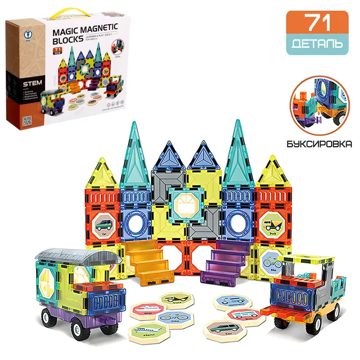 Магнитный конструктор, состоящий из множества элементов, заинтересует Вашего малыша, юный ученик с удовольствием станет рассматривать, изучать и подбирать место для каждого магнитика.