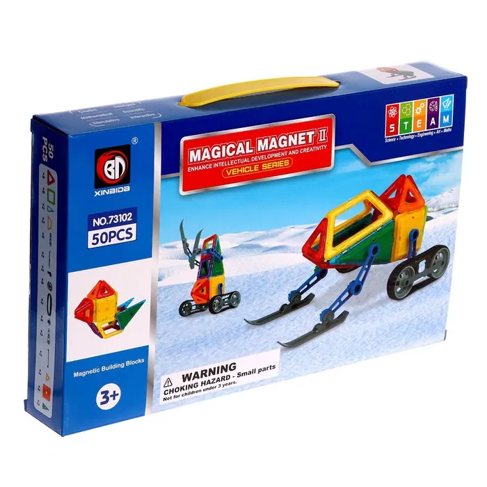 «Магический магнит» — это конструктор, детали которого соединяются как по волшебству. Под действием магнитного поля элементы притягиваются друг к другу, открывая неограниченный простор для экспериментов. Из ярких геометрических форм ребёнок соберёт машины, карусели, башни, вертолёты и даже ракеты. Иллюстрированная инструкция подскажет идеи новых моделей и продемонстрирует принципы конструирования, с ней создание фигурок станет проще и увлекательнее.