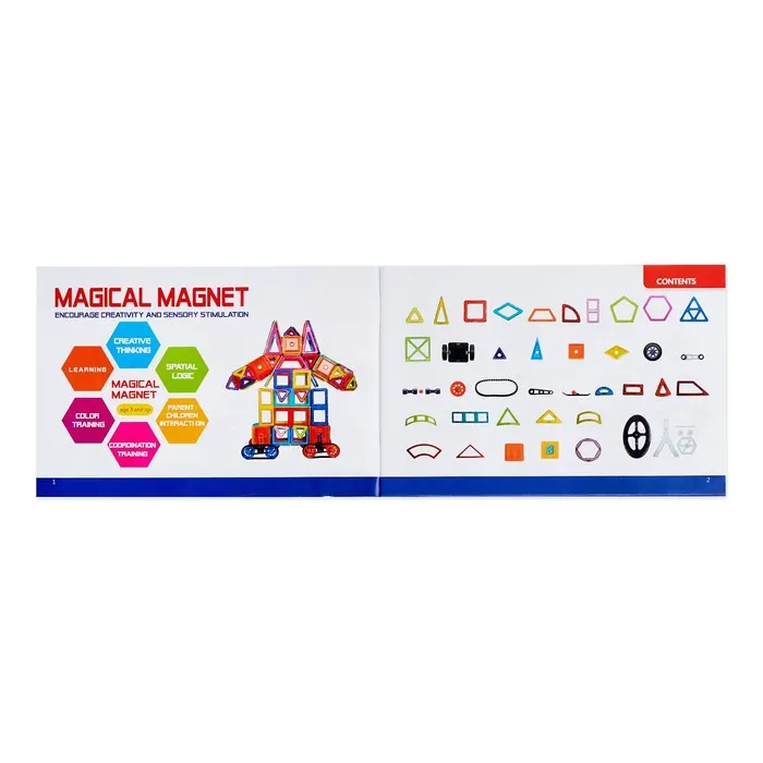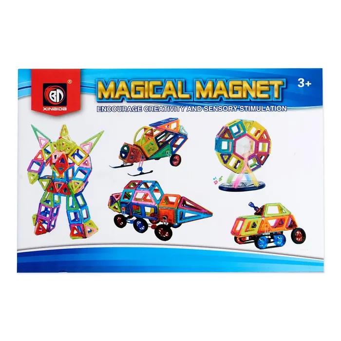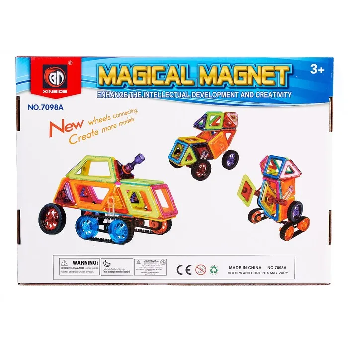 «Магический магнит» — это конструктор, детали которого соединяются как по волшебству. Под действием магнитного поля элементы притягиваются друг к другу, открывая неограниченный простор для экспериментов. Из ярких геометрических форм ребёнок соберёт машины, карусели, башни, вертолёты и даже ракеты. Иллюстрированная инструкция подскажет идеи новых моделей и продемонстрирует принципы конструирования, с ней создание фигурок станет проще и увлекательнее.