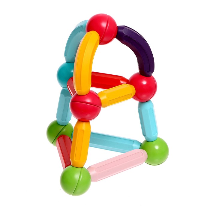 - 26 элементов для сборки: В набор входят магнитные палочки и шарики, позволяющие создавать простые и интересные конструкции. Каждый элемент легко соединяется с другими, обеспечивая удобство и безопасность сборки.