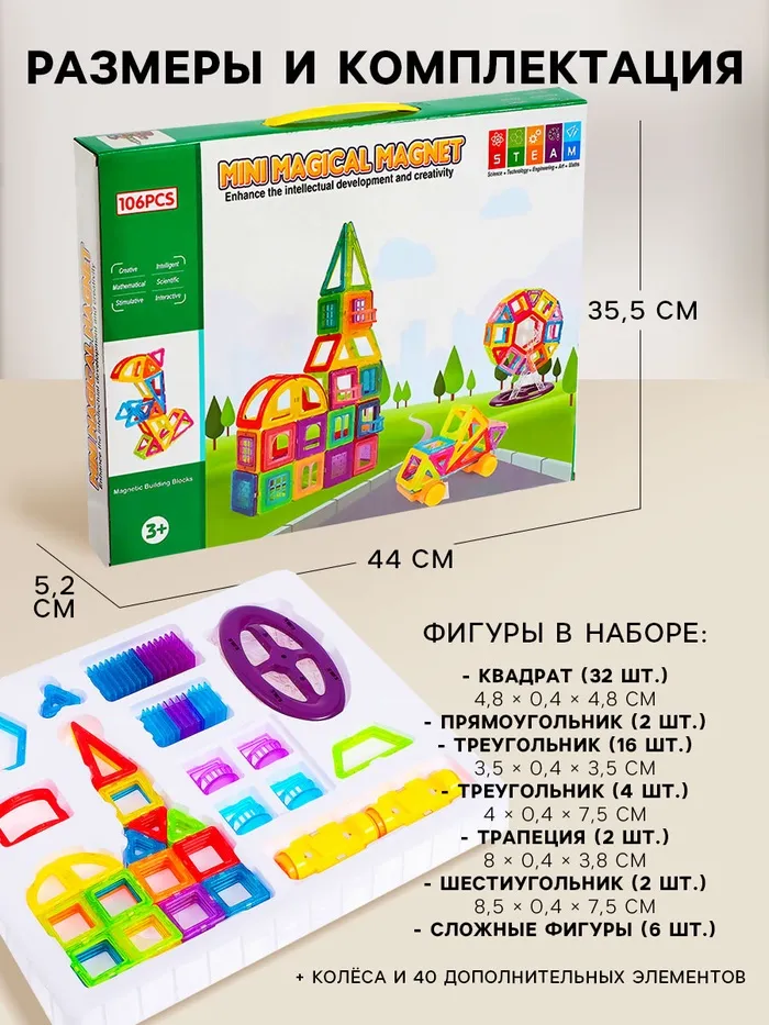 Конструктор магнитный «Мини магический магнит», 106 деталей — Характеристики