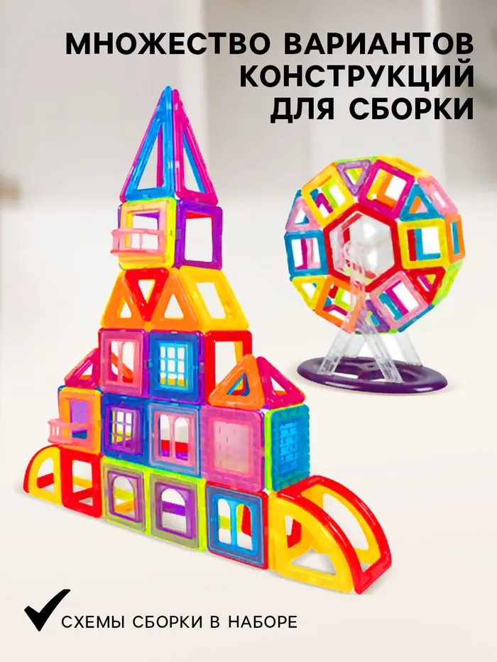 Магнитный конструктор — это набор, детали которого соединяются как по волшебству. Под действием магнитного поля элементы притягиваются друг к другу, открывая неограниченный простор для экспериментов.