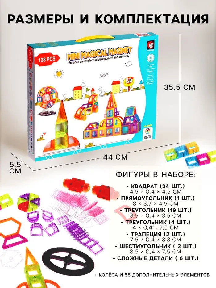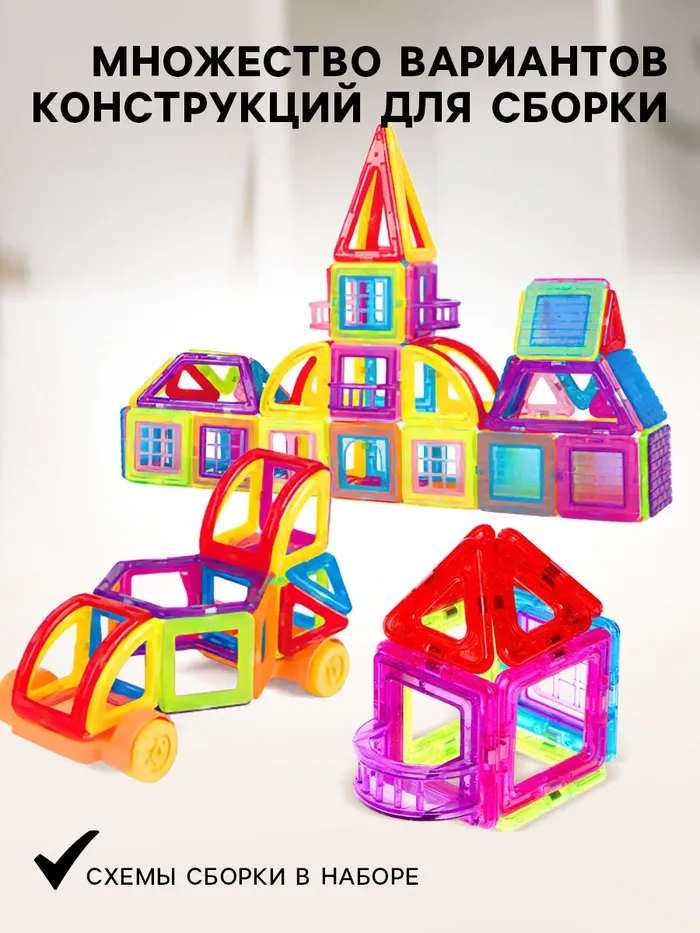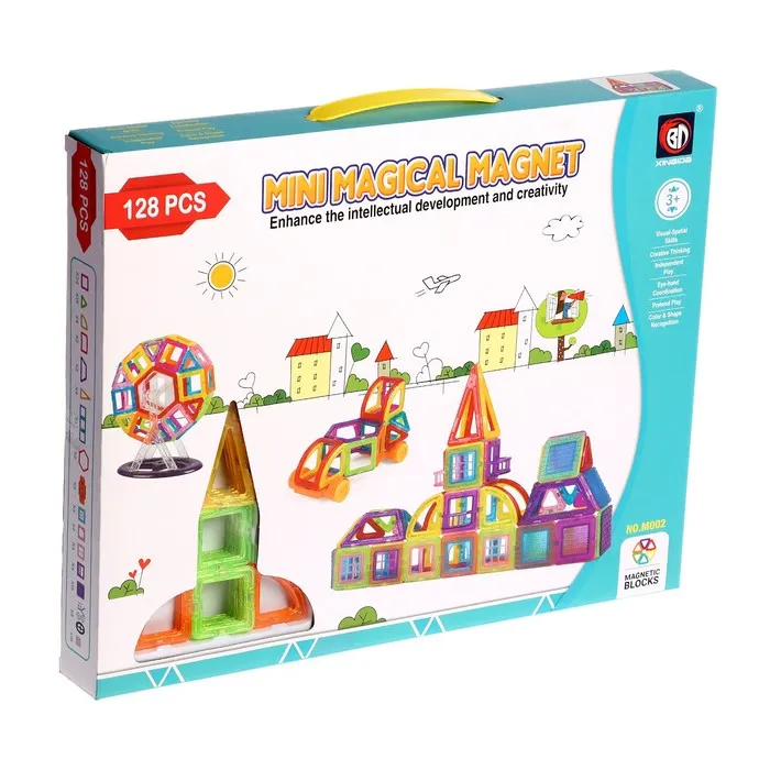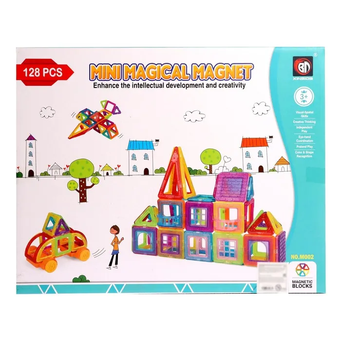 «Магический магнит» — это конструктор, детали которого соединяются как по волшебству. Под действием магнитного поля элементы притягиваются друг к другу, открывая неограниченный простор для экспериментов. Из ярких геометрических форм ребёнок соберёт машины, карусели, башни, вертолёты и даже ракеты. Иллюстрированная инструкция подскажет идеи новых моделей и продемонстрирует принципы конструирования, с ней создание фигурок станет проще и увлекательнее.