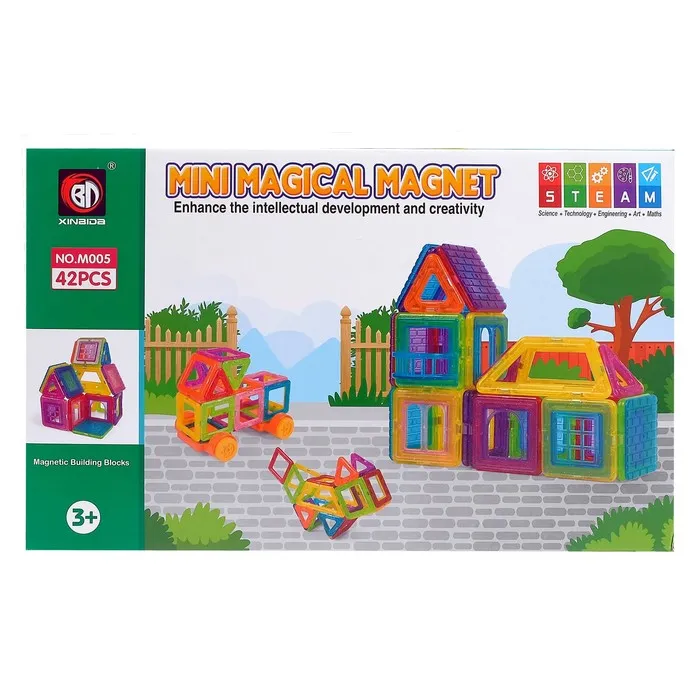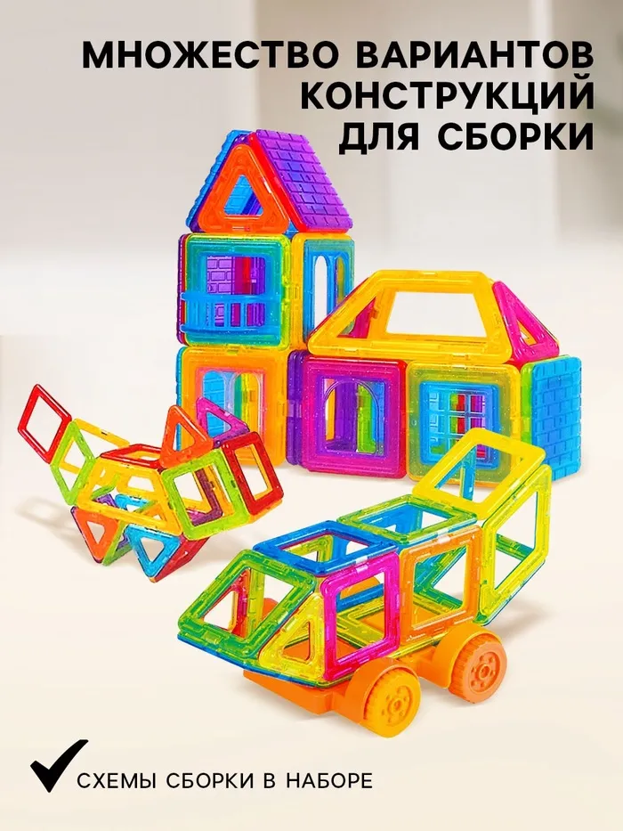 Магнитный конструктор — это набор, детали которого соединяются как по волшебству. Под действием магнитного поля элементы притягиваются друг к другу, открывая неограниченный простор для экспериментов.
