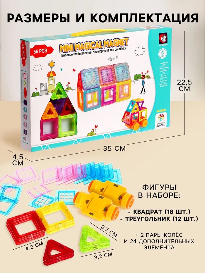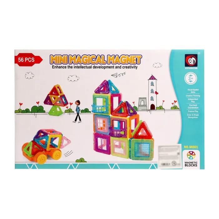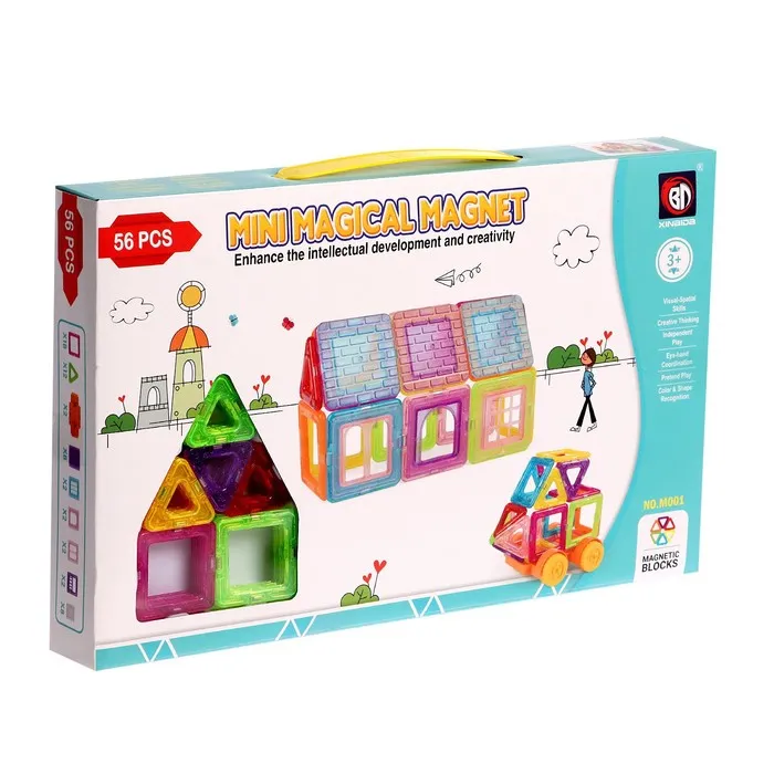«Магический магнит» — это конструктор, детали которого соединяются как по волшебству. Под действием магнитного поля элементы притягиваются друг к другу, открывая неограниченный простор для экспериментов. Из ярких геометрических форм ребёнок соберёт машины, карусели, башни, вертолёты и даже ракеты. Иллюстрированная инструкция подскажет идеи новых моделей и продемонстрирует принципы конструирования, с ней создание фигурок станет проще и увлекательнее.
