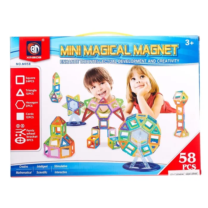 «Магический магнит»— это конструктор, детали которого соединяются как по волшебству. Под действием магнитного поля элементы притягиваются друг к другу, открывая неограниченный простор для экспериментов. Из ярких геометрических форм ребёнок соберёт машины, карусели, башни, вертолёты и даже ракеты. Иллюстрированная инструкция подскажет идеи новых моделей и продемонстрирует принципы конструирования, с ней создание фигурок станет проще и увлекательнее.