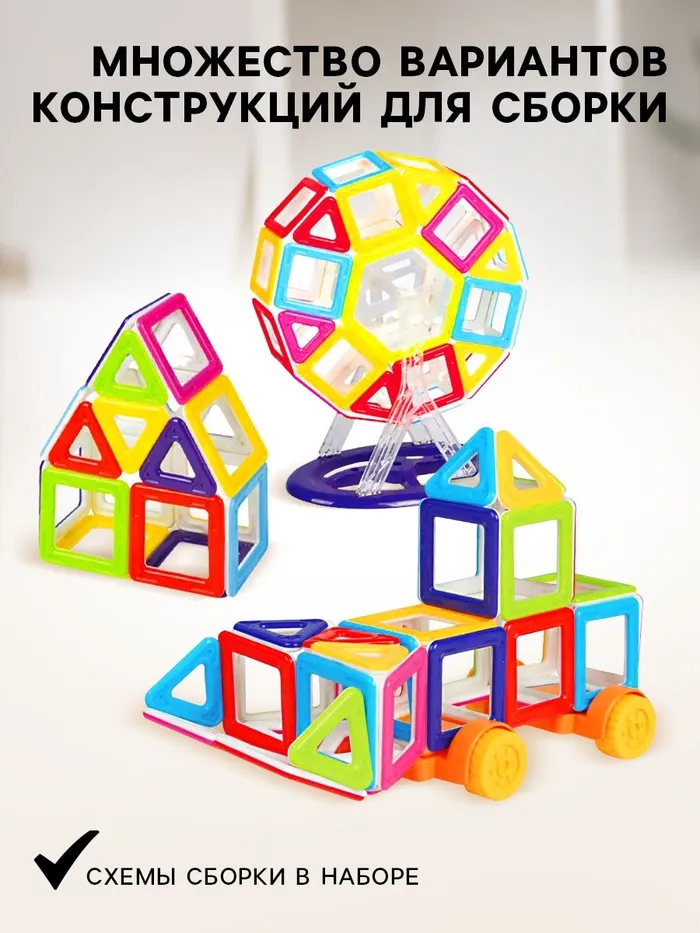 Магнитный конструктор — это набор, детали которого соединяются как по волшебству. Под действием магнитного поля элементы притягиваются друг к другу, открывая неограниченный простор для экспериментов.