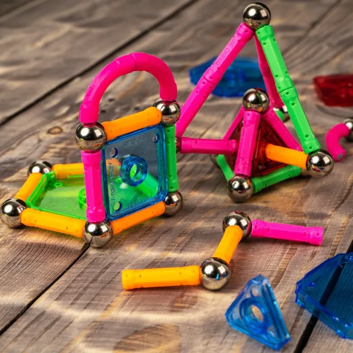 Соберите простые 3D-фигуры или сложные модели, сочетая магнитные палочки и стальные шарики. У вас всё получится!