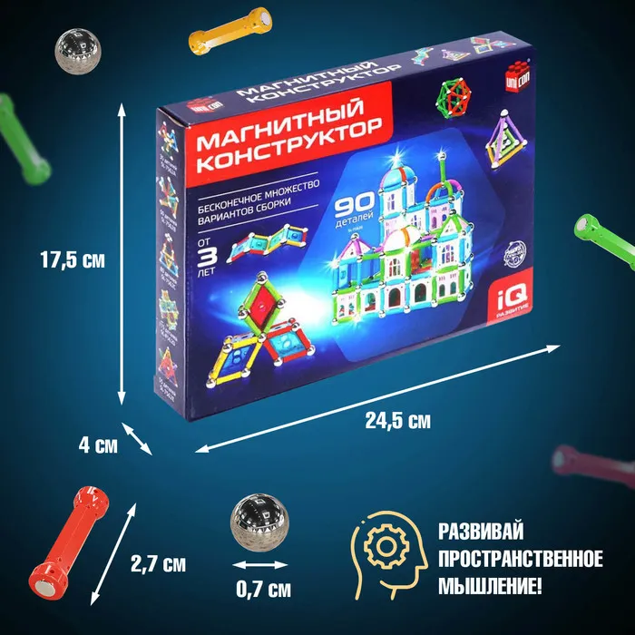 Соберите простые 3D-фигуры или сложные модели, сочетая магнитные палочки и стальные шарики. У вас всё получится!