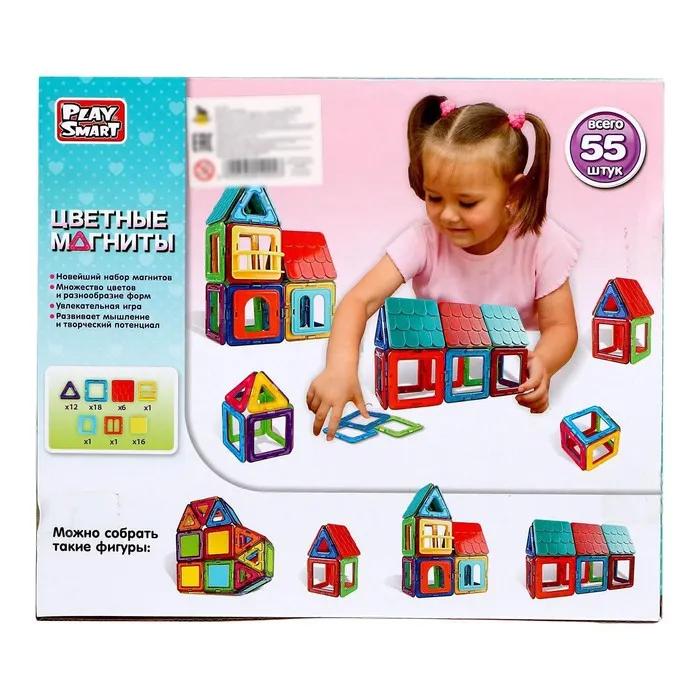 Конструктор магнитный «Цветные магниты», 55 деталей — Характеристики
