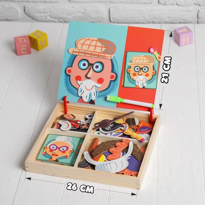 Магнитный набор «Весёлые лица» — это увлекательная игра для малышей, которая сочетает в себе творчество и обучение. С помощью деревянных магнитных элементов и карточек с подсказками ребёнок сможет создавать разнообразные выражения лиц, экспериментируя с формами, причёсками и эмоциями. Игра станет отличным способом провести время с пользой и радостью.