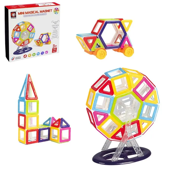 Магнитный конструктор — это набор, детали которого соединяются как по волшебству. Под действием магнитного поля элементы притягиваются друг к другу, открывая неограниченный простор для экспериментов.