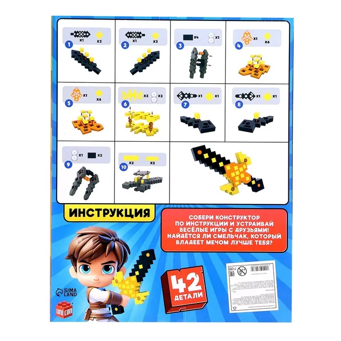 - На обратной стороне коробки есть подробная инструкция — всего 10 простых шагов, и пиксельный меч готов.