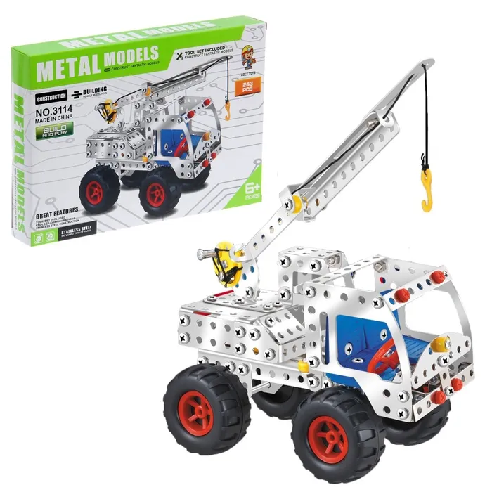 Конструктор металлический «Автокран» представляет собой набор для создания модели автокрана, способствуя развитию инженерного мышления и аккуратности при сборке.