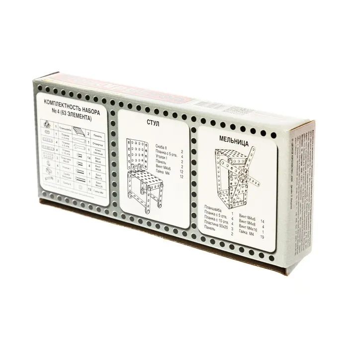 Конструктор металлический для уроков труда № 4, 63 элемента — Характеристики