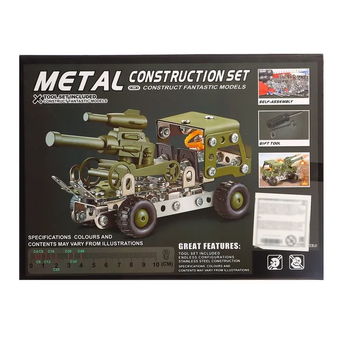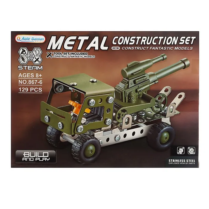 - Полноценный комплект: 129 металлических деталей включают пластины, винты и гайки для сборки. Все элементы точно подогнаны друг к другу.