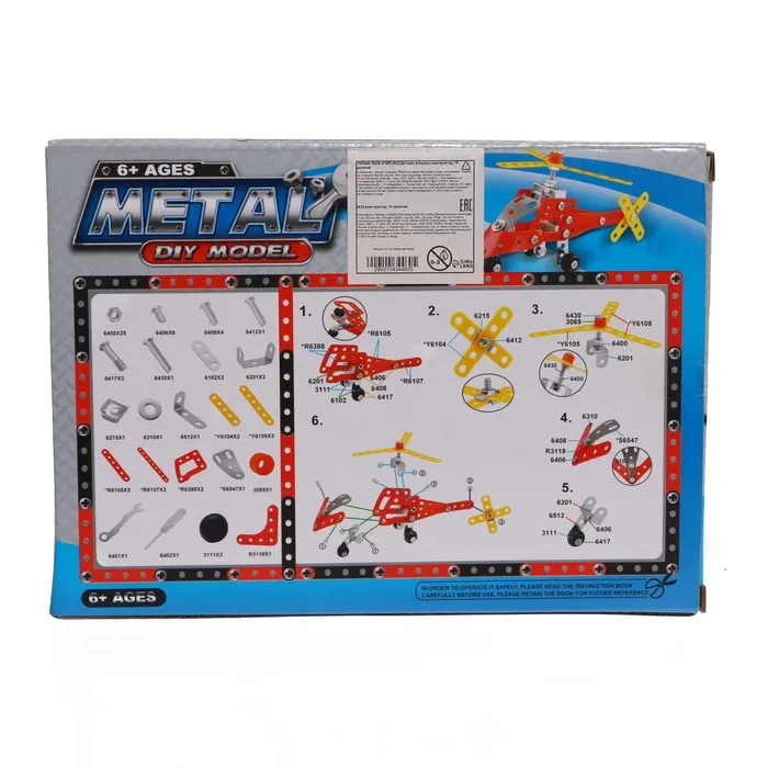 Конструктор металлический «Вертолёт», 70 деталей— то, что нужно маленькому инженеру! Эта увлекательная игрушка состоит из металлических деталей и имеет полный набор шурупов, винтиков и гаек.
