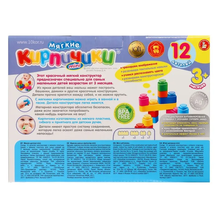 Конструктор «Мягкие кирпичики мини», 12 деталей — Характеристики