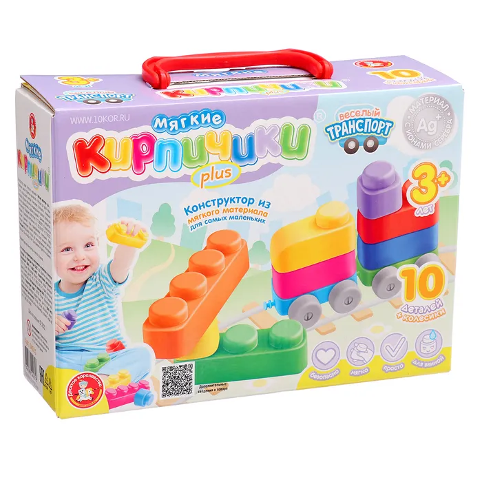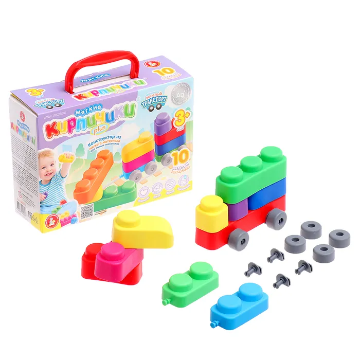 Конструктор «Мягкие кирпичики plus. Весёлый транспорт», 10 деталей, колёсики — Характеристики