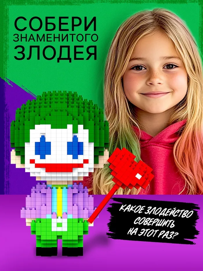 Собери культового персонажа из мини-блоков! Конструктор Mini Blocks «Джокер» позволит создать детализированную фигурку одного из самых известных злодеев. Готовая модель станет частью коллекции, оригинальным украшением или элементом сюжетных игр.