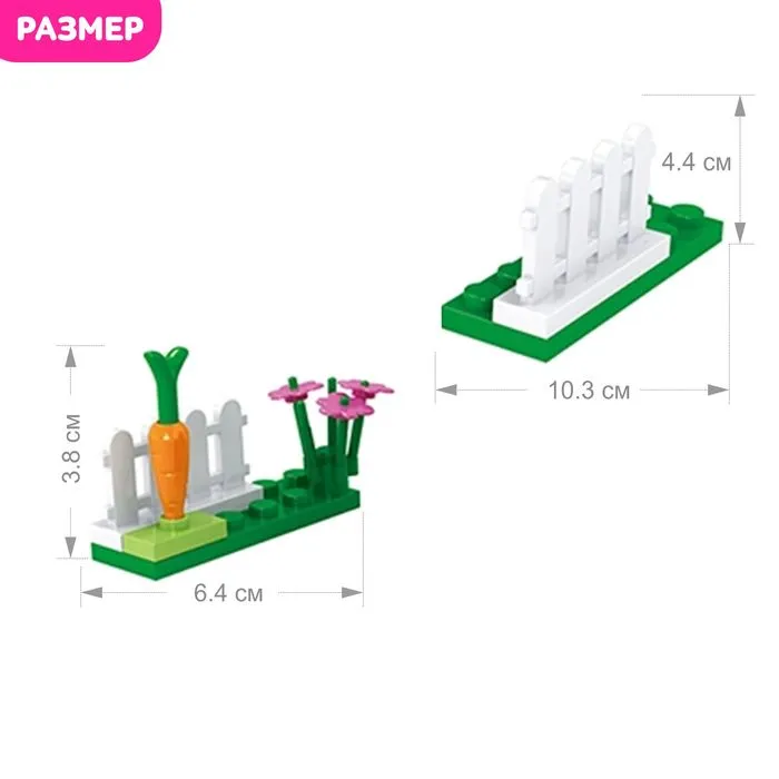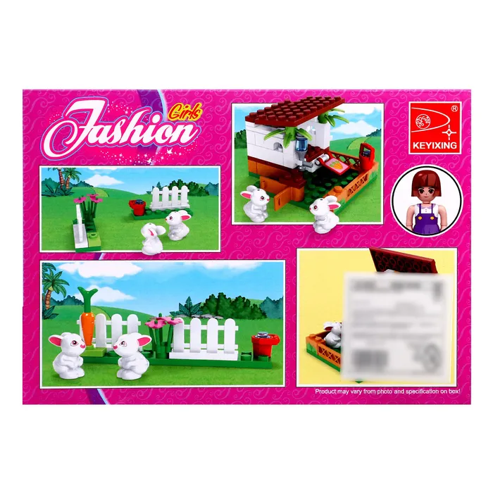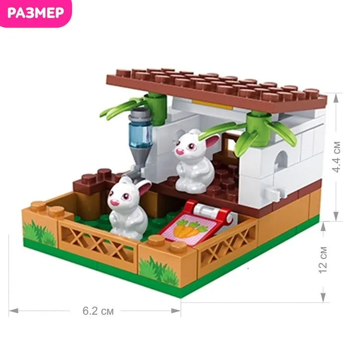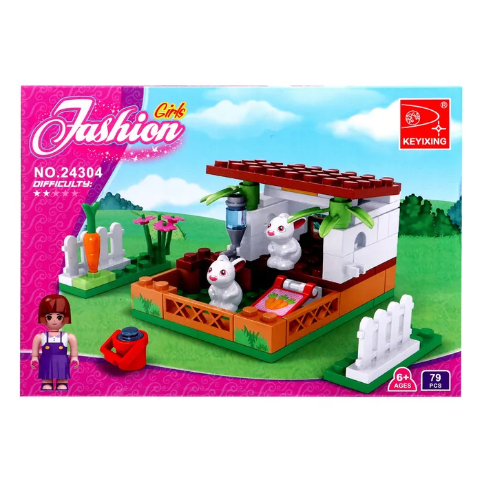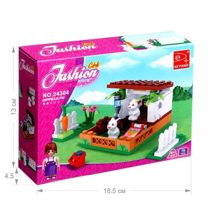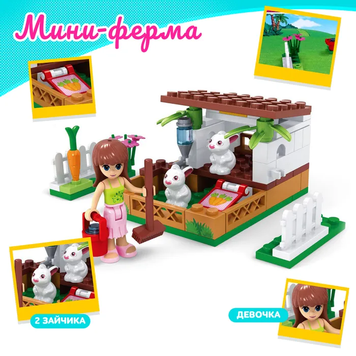С набором торговой марки Ausini малышка создаст собственную мини-ферму, где вместе с игрушечной подружкой будет выращивать овощи и заботиться о кроликах. Из 73 деталей девочка соберёт огород с загоном для животных. Разнообразные предметы расширят игровые возможности: с помощью ведра и щётки юная леди очистит вольер, в кормушку положит кроличье лакомство, территорию украсит цветами и огородит заборчиком.